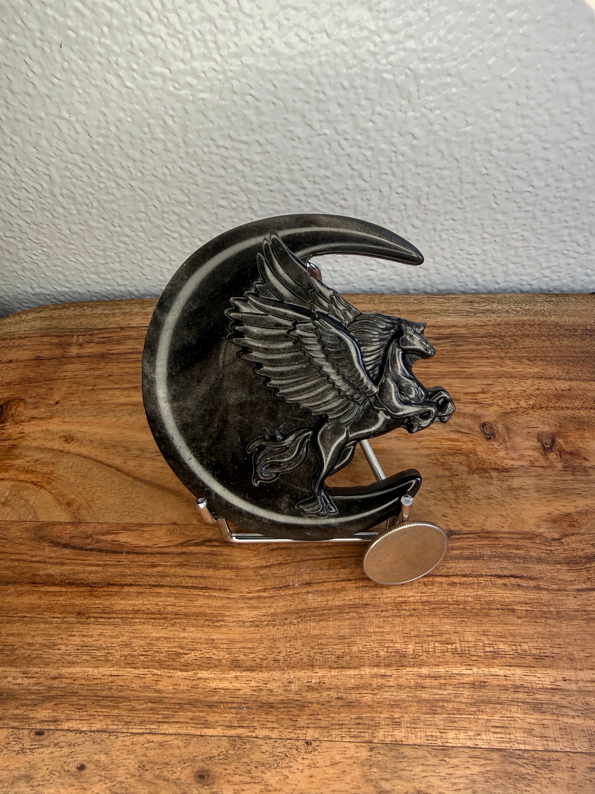 3.5”x3” Black Obsidian Unicorn on Moon Carving